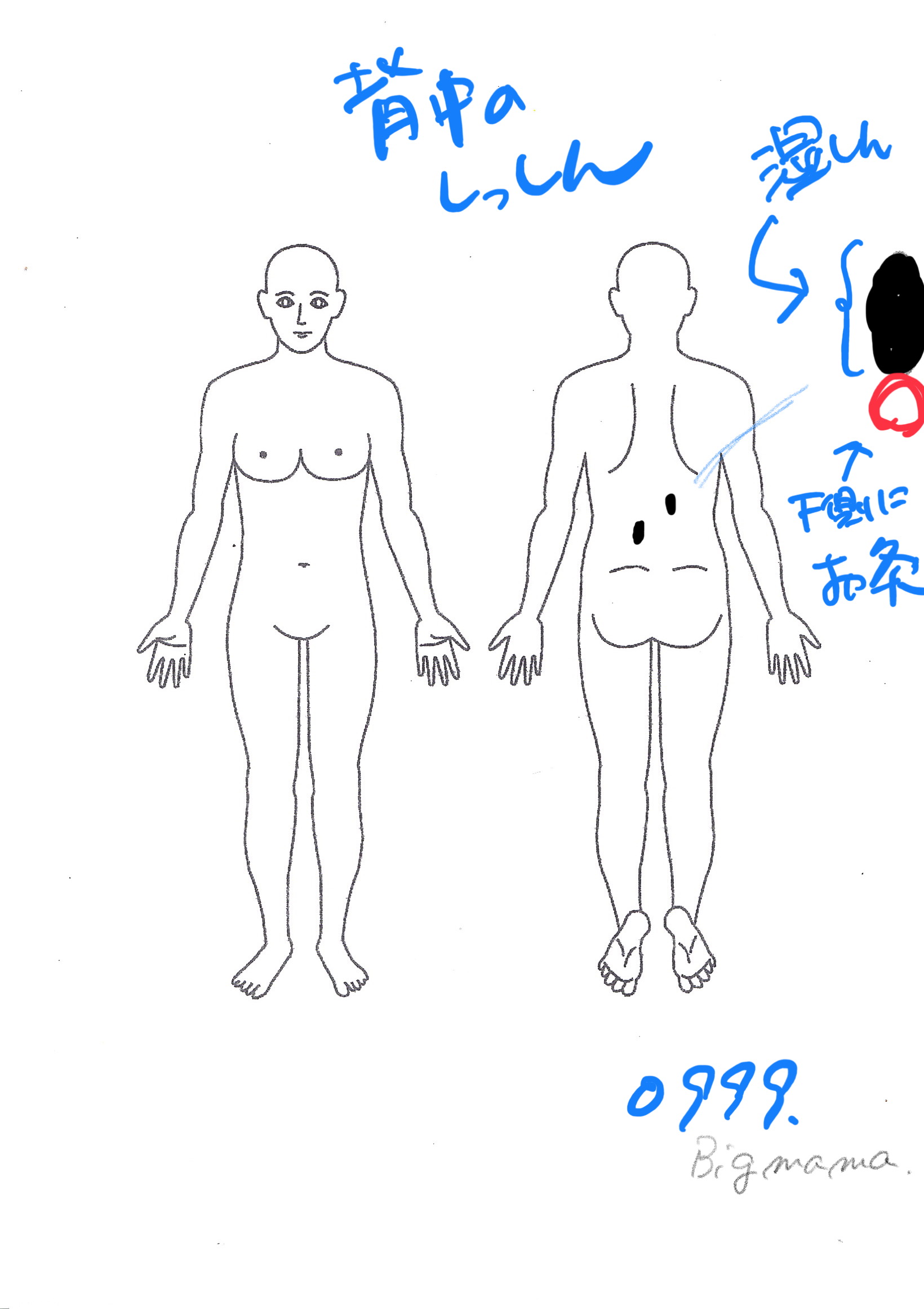 背中の湿疹、お灸で手入れ