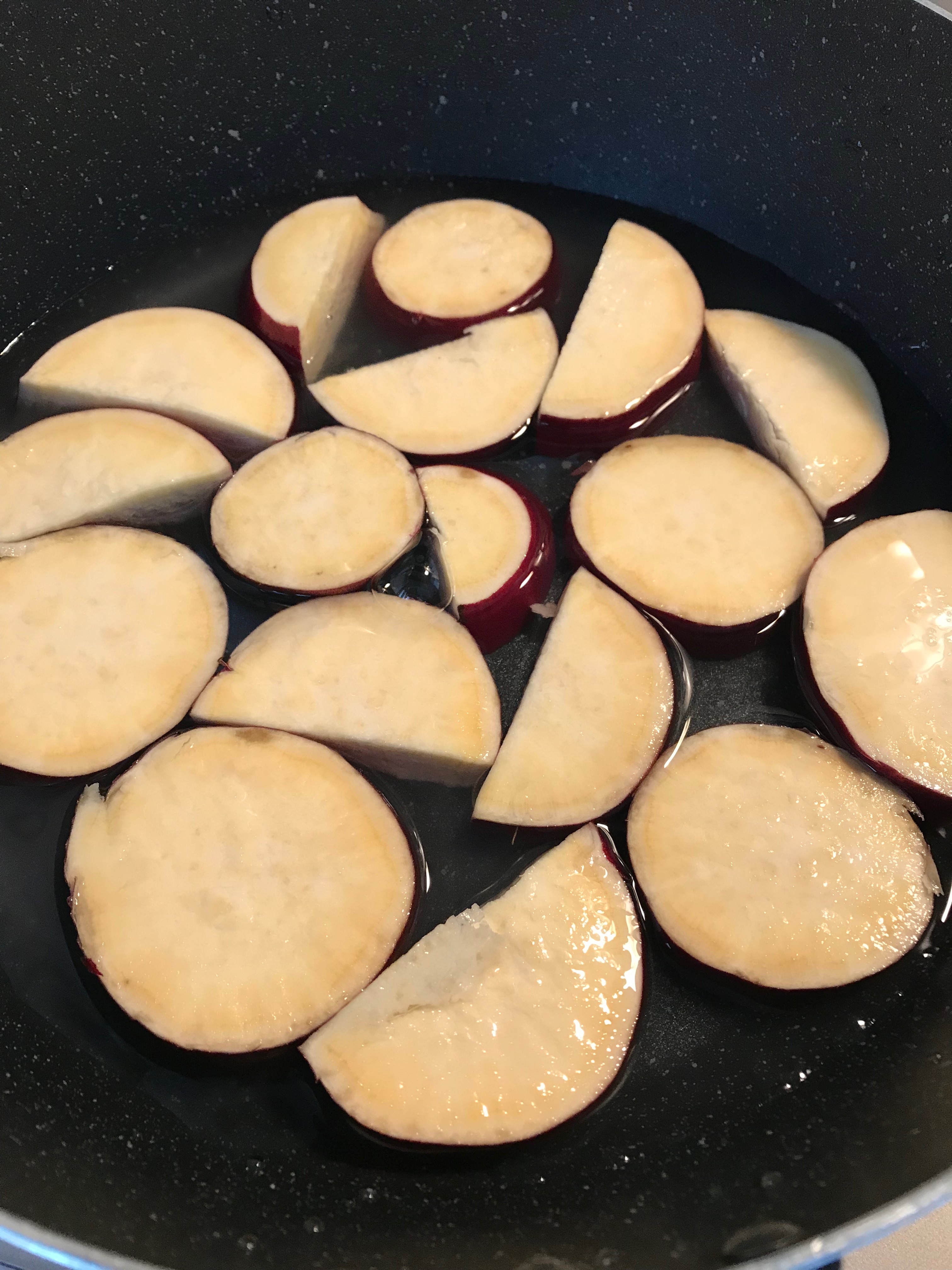 サツマイモの飴煮をつくりました。レモン多過ぎ! サツマイモの飴煮をつくってみました。 お砂糖のかわりに蜂蜜、それに搾ったレモンでおやつ風。 しかーし、レモンを入れすぎた(一個を絞ったので沢山できちゃったんだけど、そのままいれちゃったので)ので、少しレモンが勝ったお味です。いいんだもーんと。 さつまいも1本 蜂蜜大さじ2 レモン1個絞る(これでは多いと思いますので半分でよいのかと) 1:サツマイモをきって、水にさらします。 2:ひたひたの水を入れて一煮立ち 3:蜂蜜とレモンを搾り入れます 4:そのまま10−15分、キッチンペーパーを掛けて煮ます。 5:できあがり クリックして X で共有 (新しいウィンドウで開きます) X Facebook で共有するにはクリックしてください (新しいウィンドウで開きます) Facebook クリックして印刷 (新しいウィンドウで開きます) 印刷 クリックして友達にメールでリンクを送信 (新しいウィンドウで開きます) メールアドレス