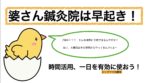 朝、7時半からやってる鍼灸院 治療院の始まりは平日は8時30分です。 そして土曜日はなーんと、7時30分スタートです。 朝一の予約枠は4つですが、そしてこの朝一の枠だけは、 7時30分から45分の間に来ていただければOK […]